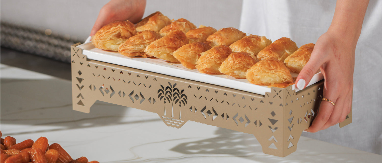 صحن سيراميك مستطيل مع قاعدة معدنية