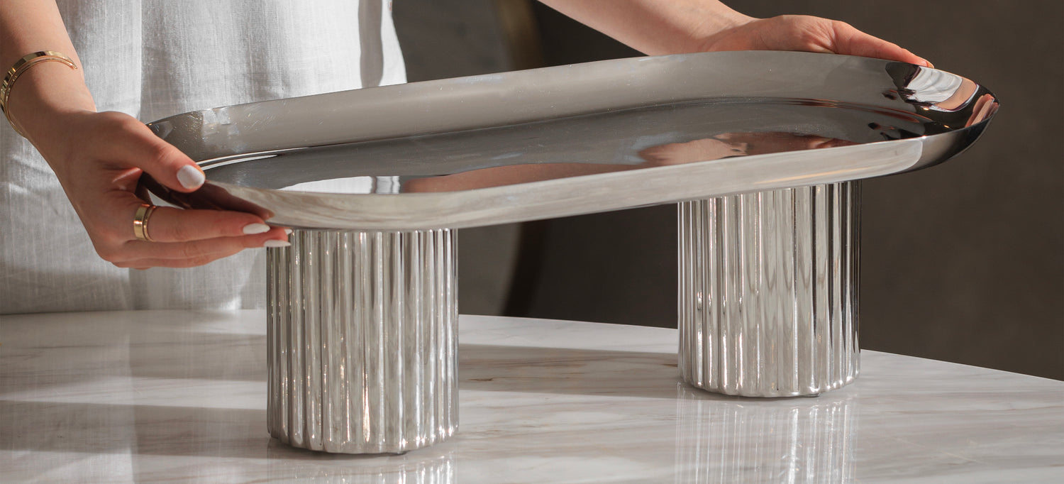 صينية تقديم بيضاوية من الألومنيوم على قاعدة