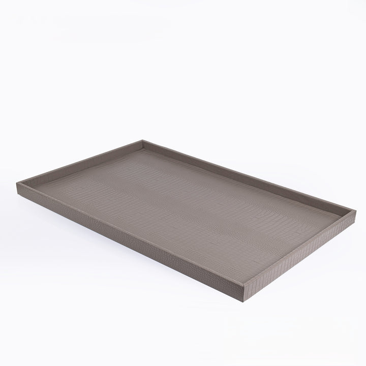 Wooden Serving Tray Wrapped in Light Grey Crocodile Leather – Large