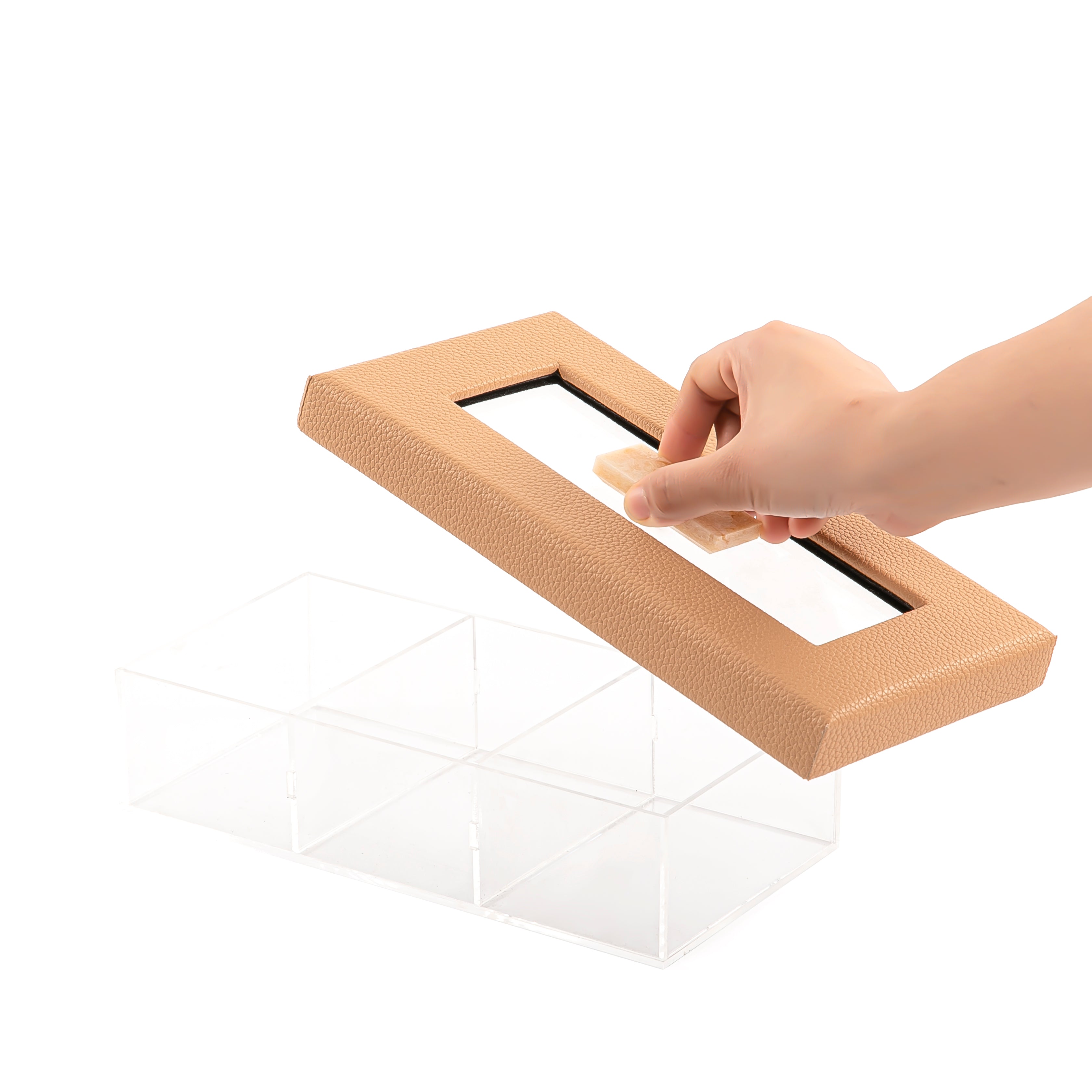 Creative box made of acrylic with leather cover.