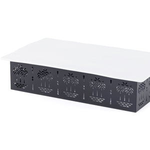 Elegant serving stand with decorative Islamic. , creating an artistic border around the base. The flat square top provides a stable surface for serving or display purposes. Perfect blend of functionality and traditional Islamic artistic elements.