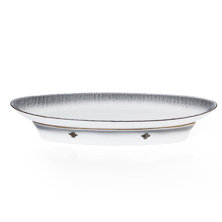 Elegant ceramic plate with a practical stove stand , perfect for serving hot dishes while keeping them warm. A beautiful and functional piece that adds a touch of sophistication to your dining experience.