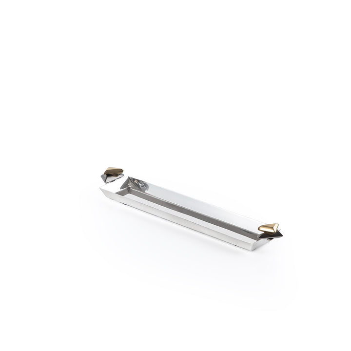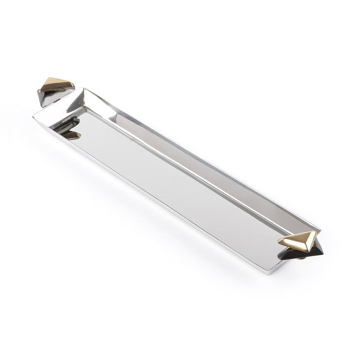 Elevate your table presentation with this sophisticated long metal serving tray, expertly crafted in a striking black and gold finish. Measuring 32×7 cm, its elongated design perfectly accommodates appetizers, pastries, or decorative displays. The durable metal construction ensures lasting elegance, while the contrasting color palette complements both modern and traditional décor. Ideal for entertaining, this versatile piece transitions seamlessly from everyday use to special occasions, adding a touch of refined luxury to any setting.
