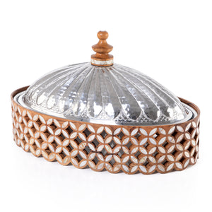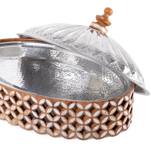 Elegant aluminum oval serving bowl with lid