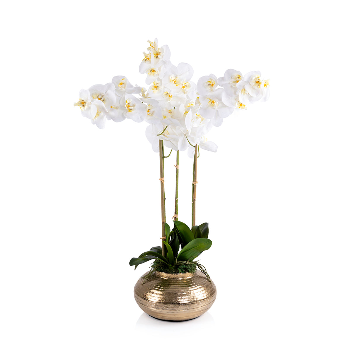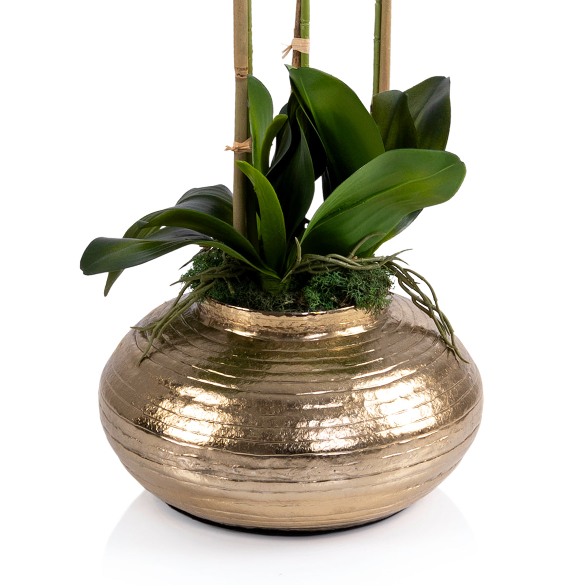 Gold metal vase with Orchid