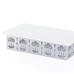 Elegant serving stand with decorative Islamic. , creating an artistic border around the base. The flat square top provides a stable surface for serving or display purposes. Perfect blend of functionality and traditional Islamic artistic elements.