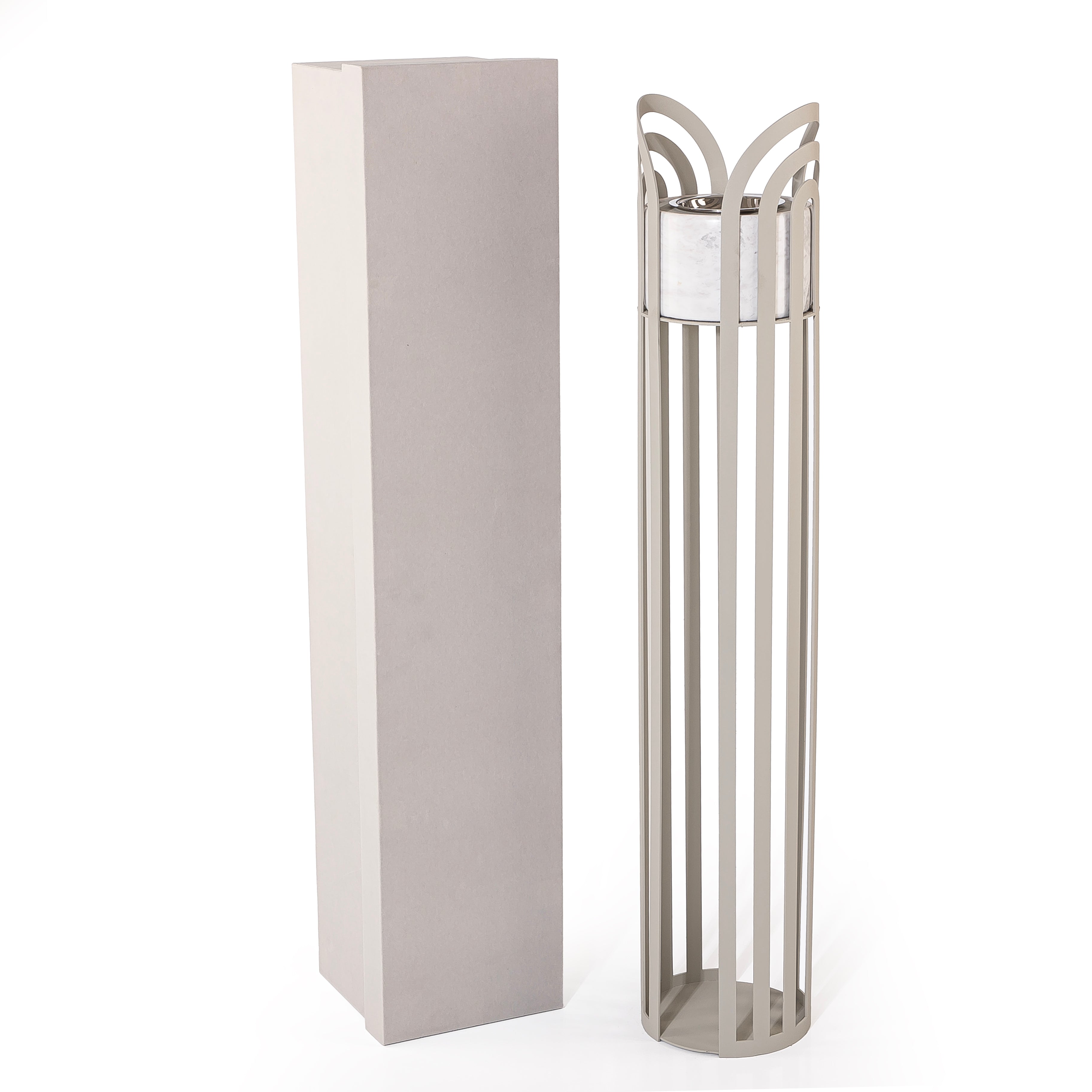 Elevate your space with this stunning vertically designed mabkhar crafted from sleek grey metal, paired with a round white marble base that adds a touch of timeless luxury. Packaged in a premium gift box, it’s the perfect blend of tradition and contemporary style — ideal as a thoughtful gift or a statement piece for your home.