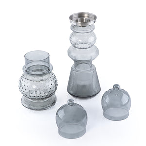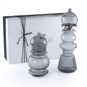 2 Pcs Large Mabkhar Set Glass Holder with Metal Burner & Dome – Grey