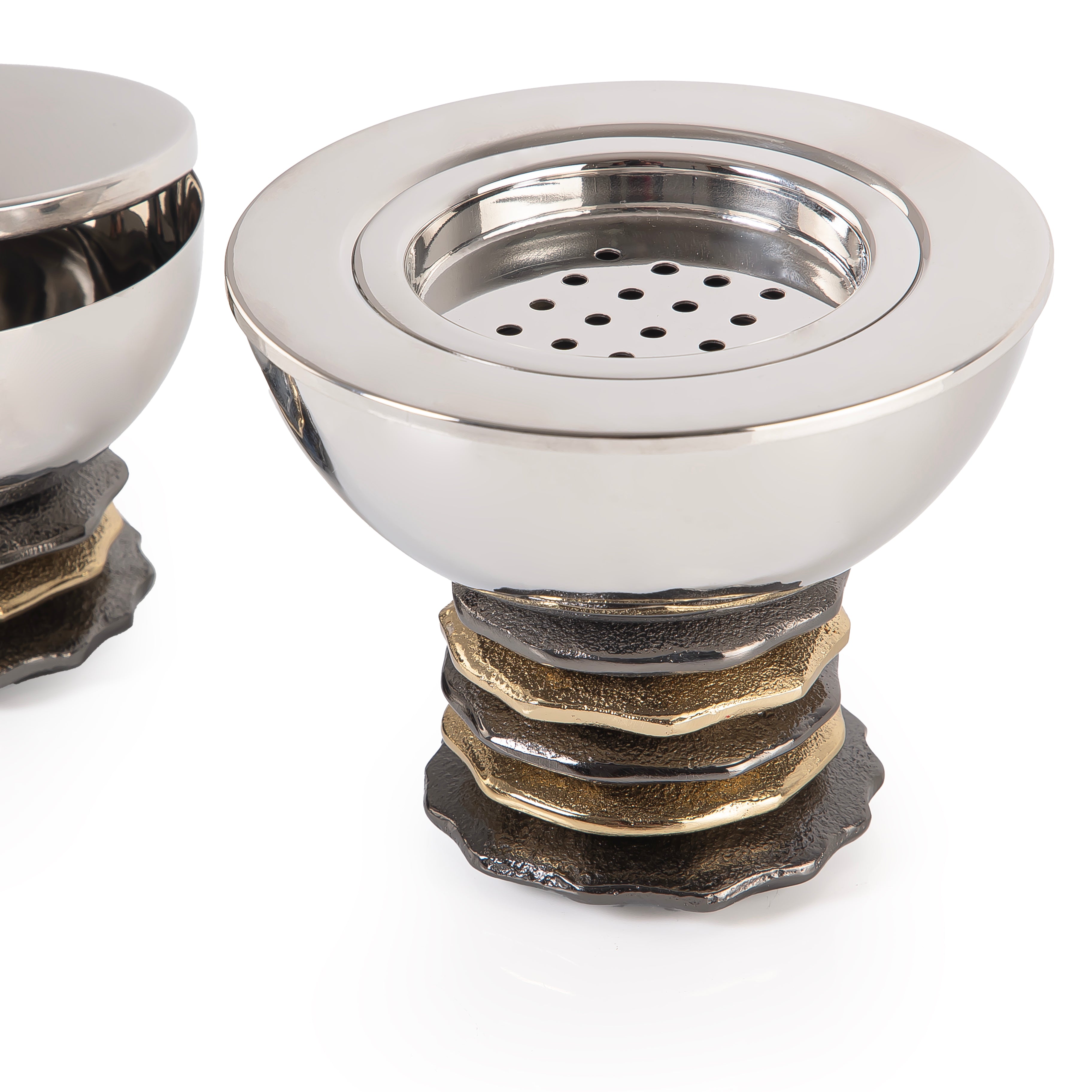 Enhance your home with the rich aroma of bakhour using this exquisite Mabkhar & Bakhour Box Set. This elegant duo includes a beautifully crafted mabkhar (incense burner) and a matching bakhour storage box, both designed for a luxurious and sophisticated look.