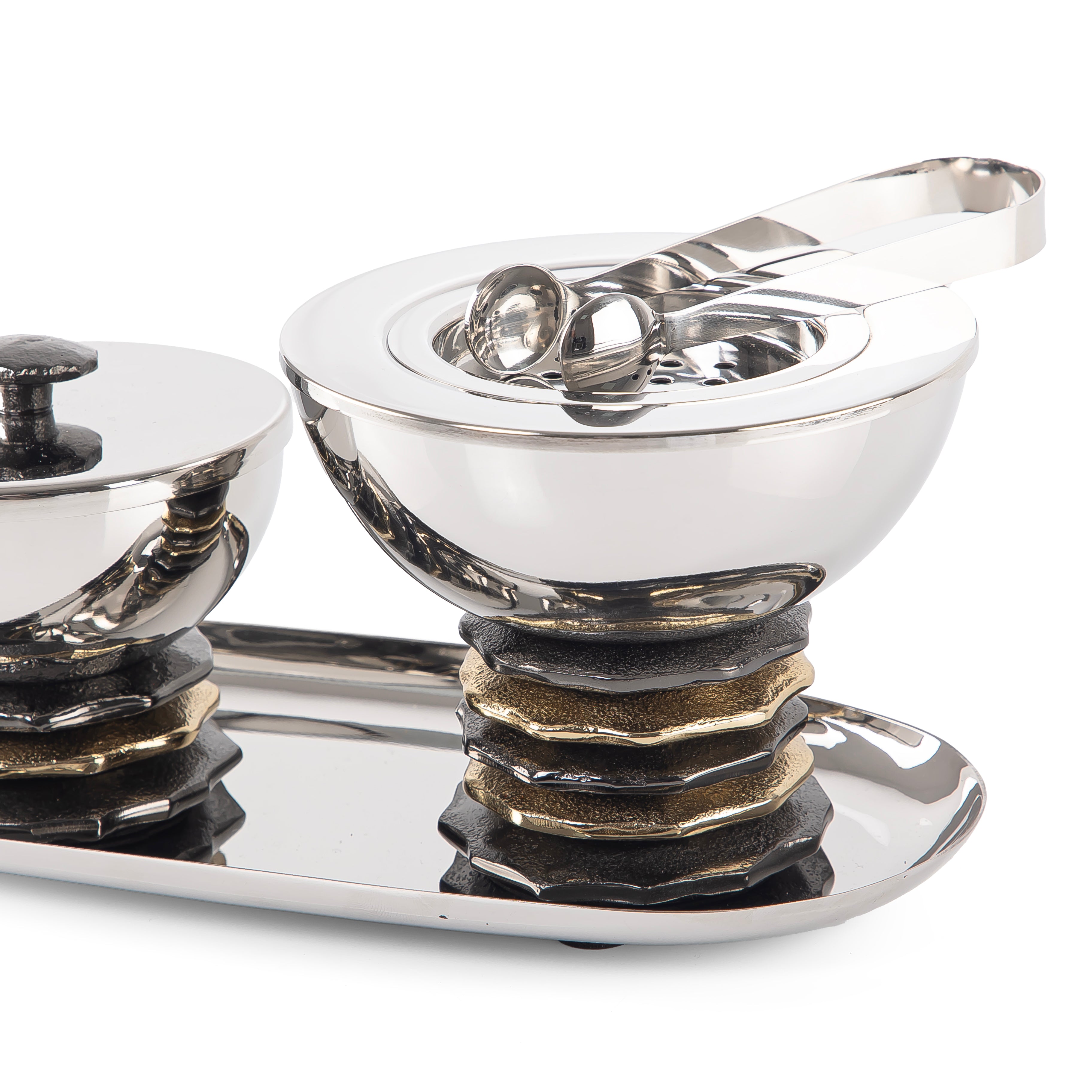Metal set of 4 mabkhar with tray, bokhor box & tong with gift set
