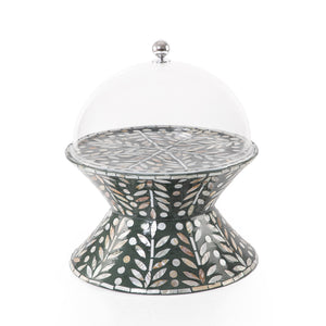 Chose the option: Small mother of pearl serving stand with acrylic lid - green