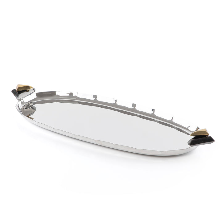 Elevate your table presentation with this sophisticated oval serving tray from La Bella Collection. Featuring an elegant green and gold color palette, this piece seamlessly blends contemporary design with timeless appeal. The generous oval shape provides ample space for appetizers, desserts, or decorative displays, making it an essential addition to any refined entertaining setup. Crafted with attention to detail, this tray combines functionality with aesthetic sophistication, perfect for both everyday use and special occasions.