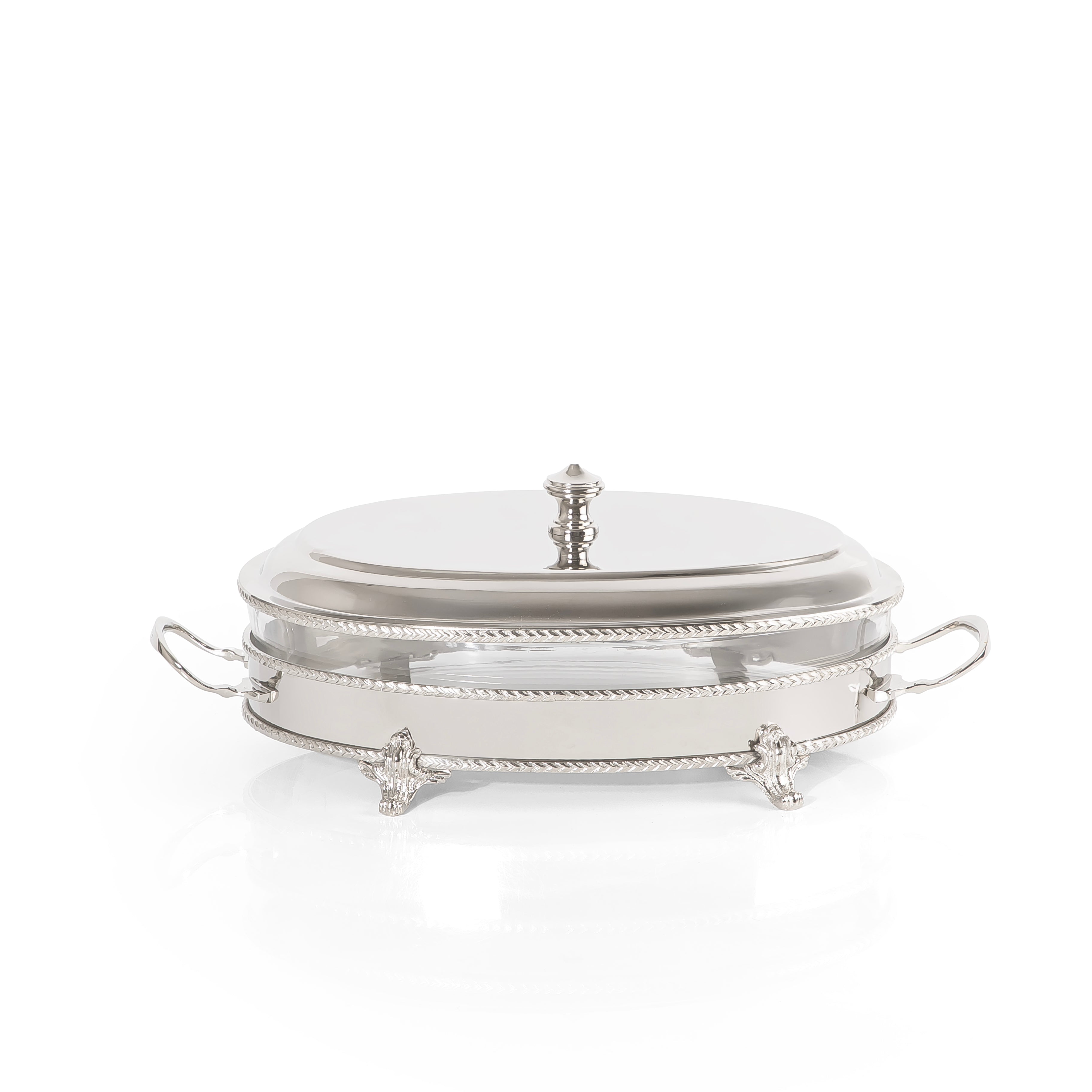 Oval Silver Stainless Steel Chafing Dish with Interior Glass Bowl - Large