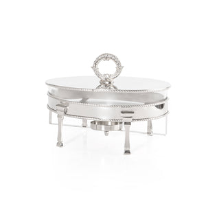 Oval Silver Stainless Steel Chafing Dish with Interior Glass Bowl and Handle - Large