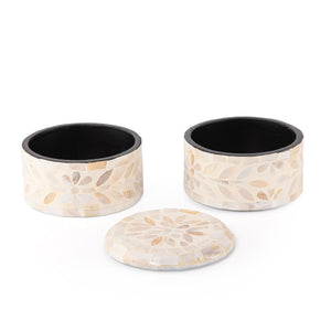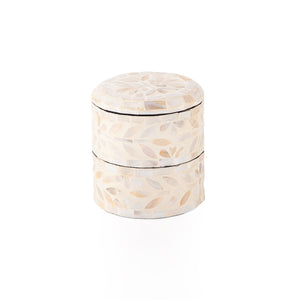 A stylish 2-story box with a grey finish, crafted from MDF and MOP. This compact storage solution features a cover and is perfect for organizing your essentials.