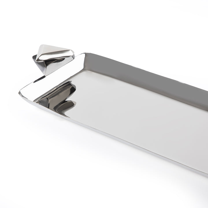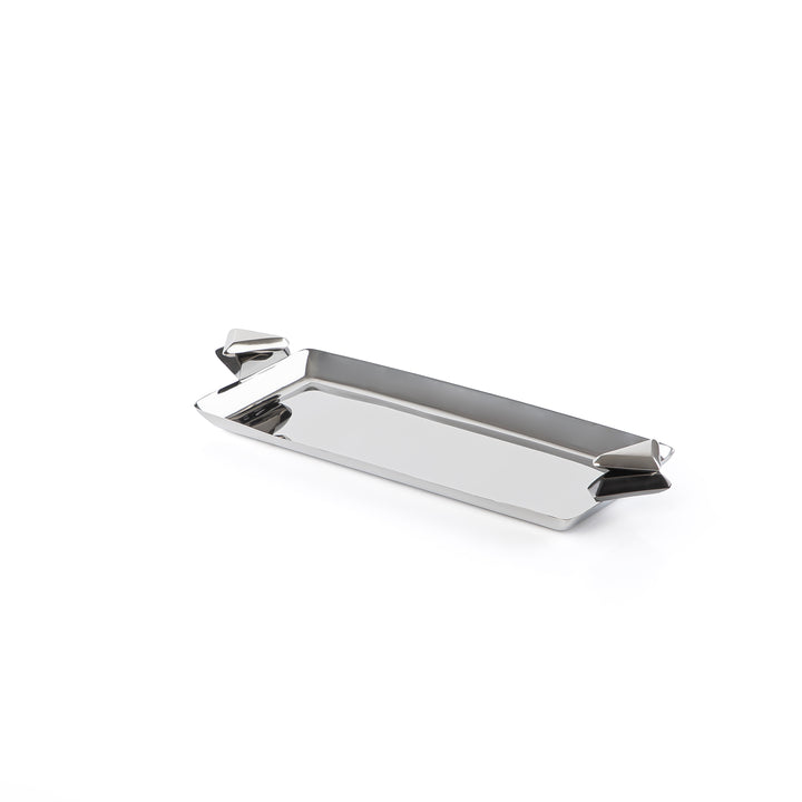 Elevate your table service with this sophisticated rectangular metal serving tray, expertly crafted in a striking silver and black finish. Measuring 32×14 cm, its generous proportions accommodate multiple items while maintaining an elegant, streamlined profile. The durable metal construction ensures lasting quality, while the two-tone design complements both contemporary and classic décor. Perfect for presenting appetizers, pastries, or beverages at gatherings, this tray combines functionality with refined aesthetics. An essential piece for discerning hosts who appreciate quality tableware.