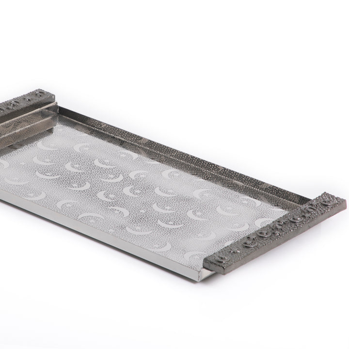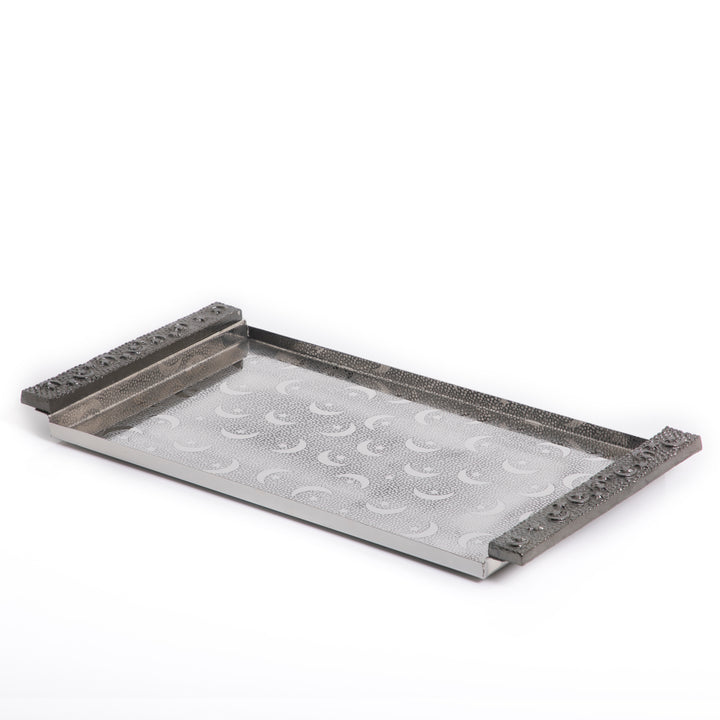 This elegant Metal Tray serves as a sophisticated accent to any countertop. The metal construction makes it strong and stable, perfect for holding anything from drinks to aromatherapy candles. A timeless addition to any home.
