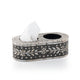 This medium-sized round steel heater features a sturdy wooden base and is wrapped in dark beige diagonal leather, combining elegance with functionality. Its refined design adds a touch of sophistication to any environment.