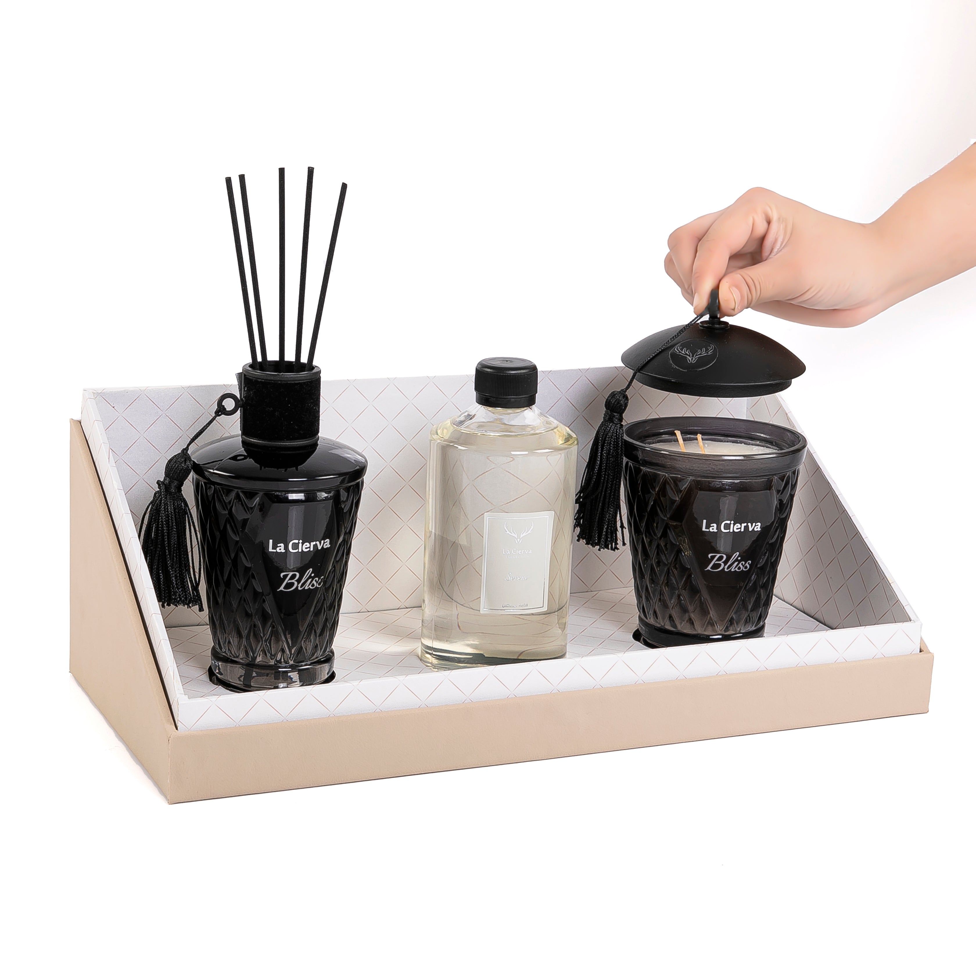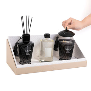 A set of La Ceirva consist of a Reed diffuser 250 ml with fragrance and a candle, inside a cardboard box , with acrylic cover.