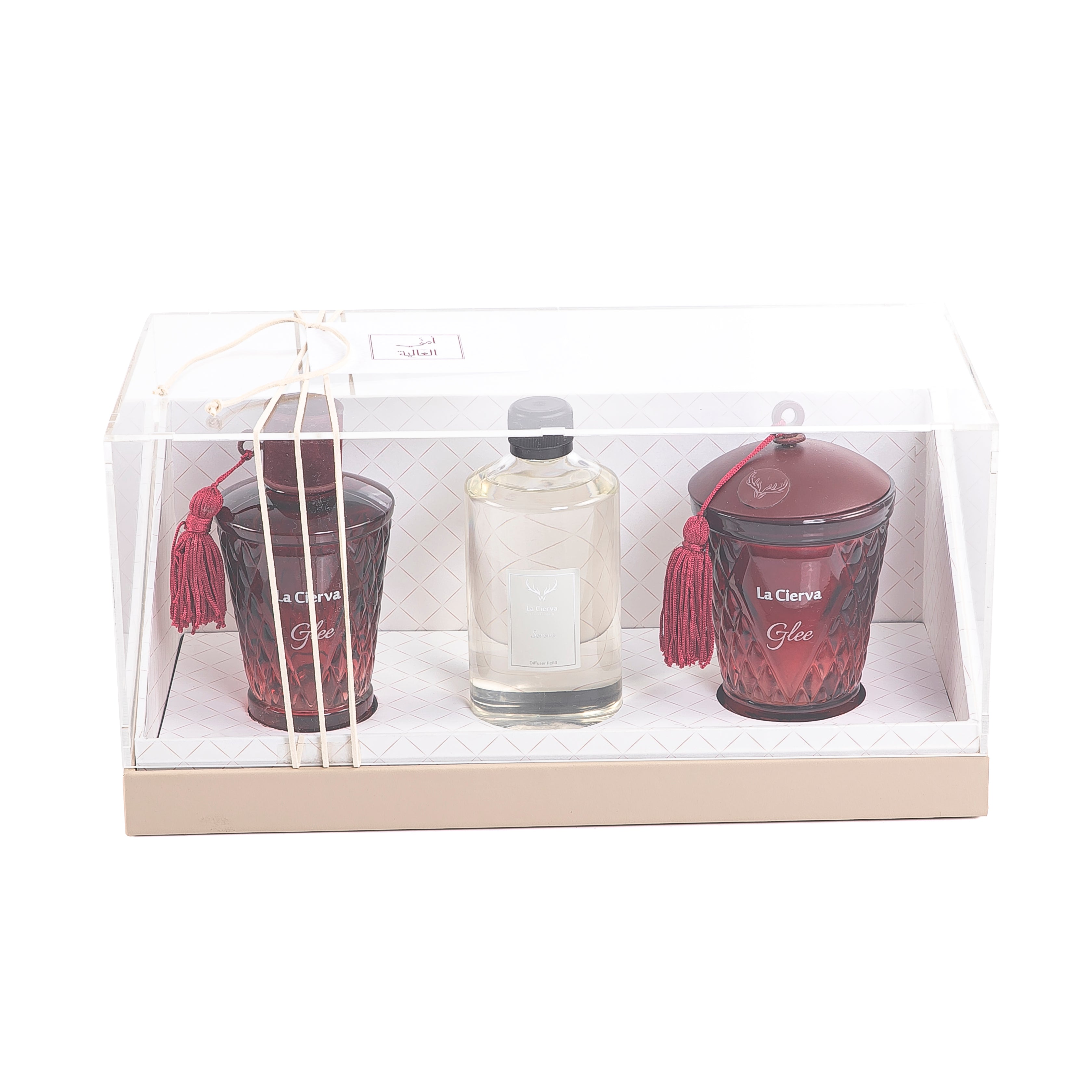 A set of La Ceirva consist of a Reed diffuser 200 ml with fragrance and a candle, inside a cardboard box , with acrylic cover.