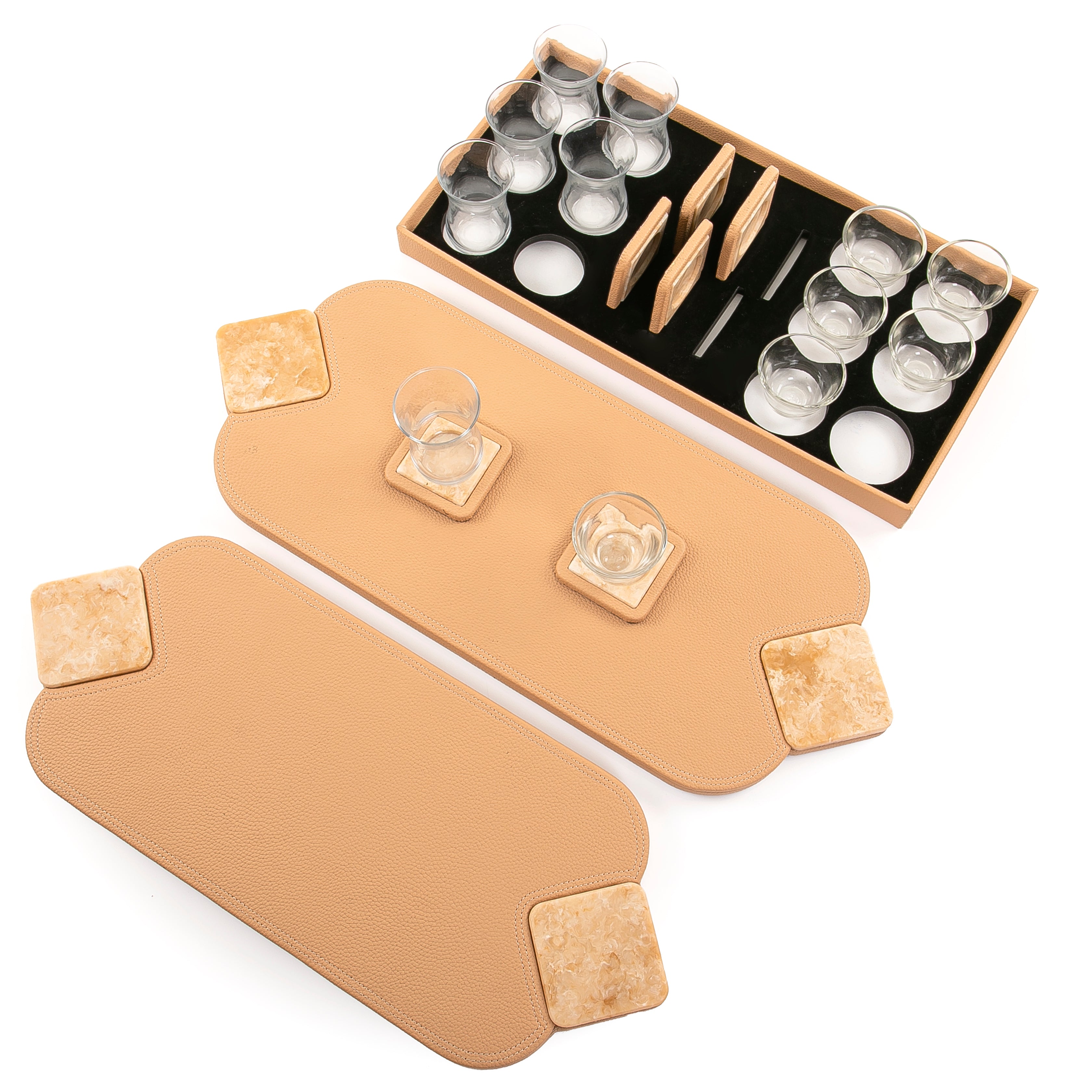 Chose the option: Set of 2 leather trays with cups and coaster with gift box