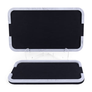 Increase your home's elegance with this set of 2 rectangular leather trays. Each tray features a luxurious marble handle for easy carrying and a sophisticated touch. Ideal for serving or organizing, these trays add both style and functionality to any space.