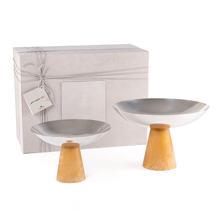 Set of 2 Stainless Steel Serving Dishes with Conical Resin Base and Gift Box