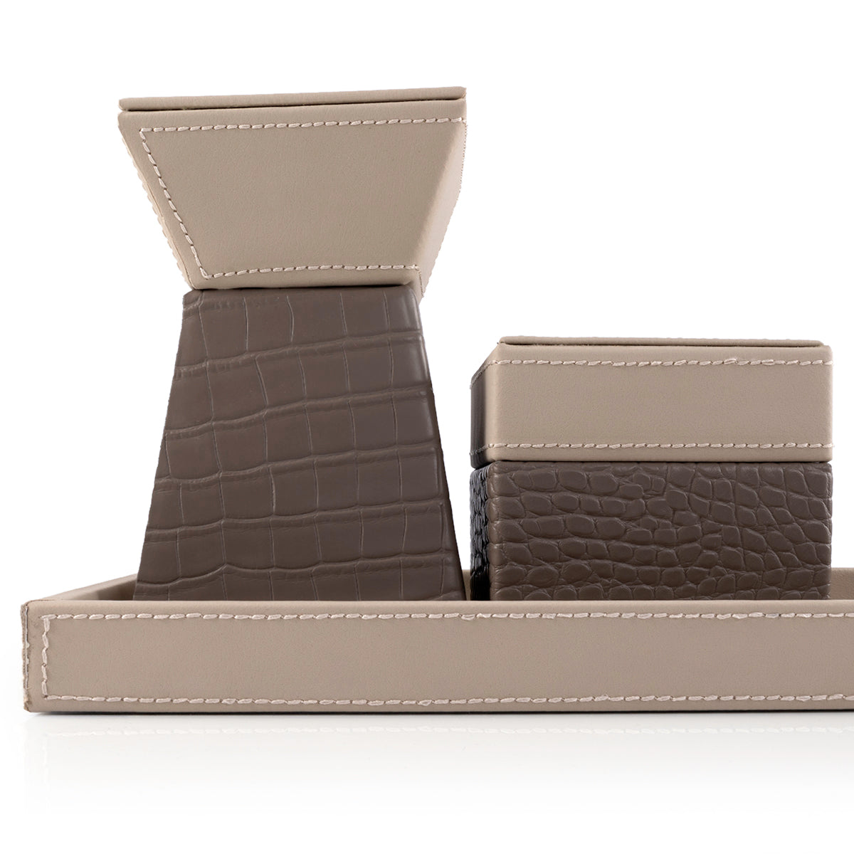 Crafted from luxurious leather, this set of Mabkhar will elevate your incense burning experience. The durable material ensures long-lasting use, while the elegant design adds a touch of sophistication to any room. Perfect for creating a calming and inviting atmosphere.