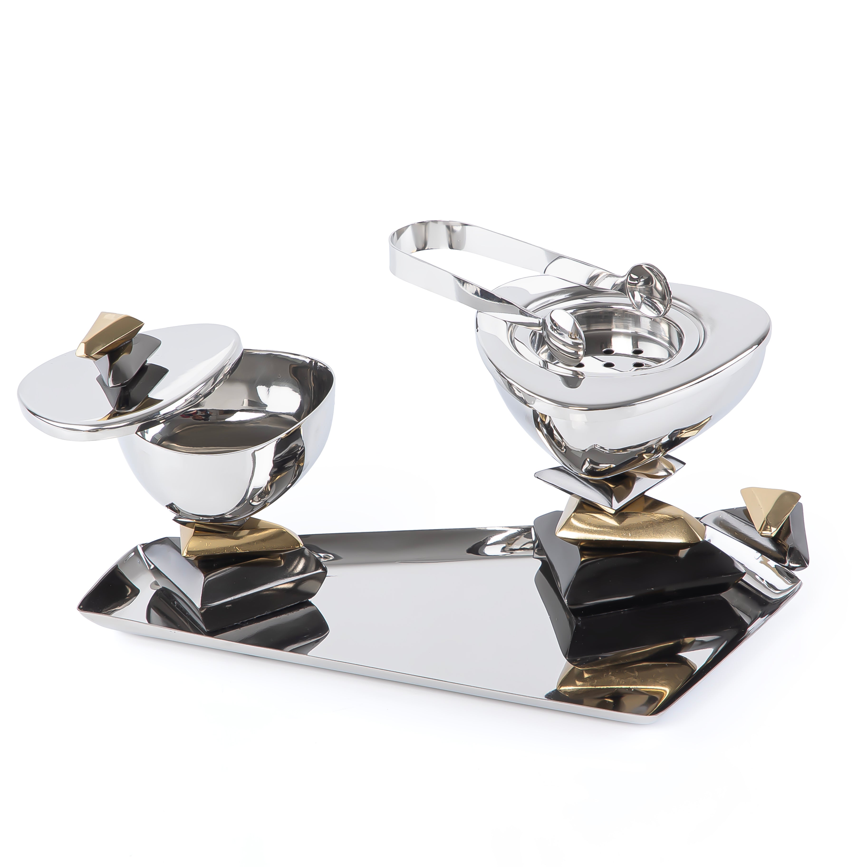 Luxury Metal Mabkhar Set of 4 pcs with Gift Box - Silver / Black