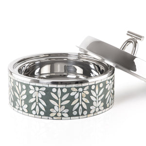 اجمع بين الفخامة والأداء العملي مع حافظ حرارة الطعام المصنوع من الصدف من الخارج والإستانلس ستيل من الداخل. يتميز هذا المنتج بتصميم أنيق يمنح مائدتك لمسة من الرقي، مع أداء عالي الكفاءة للحفاظ على حرارة الطعام لفترات طويلة.