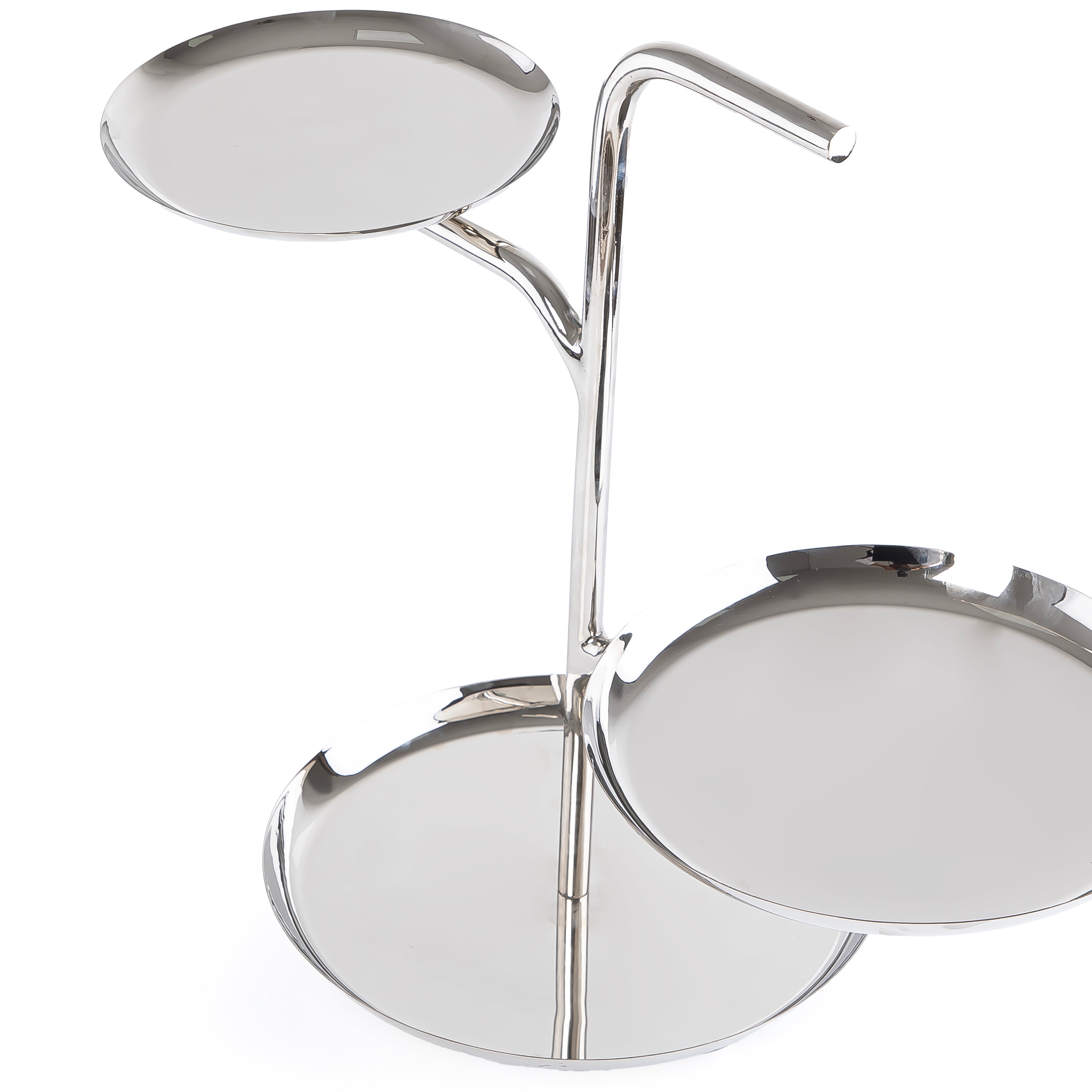 ارتقِ بعرض مائدتك مع هذا الحامل الأنيق ثلاثي الطبقات المصنوع من المعدن المصقول.