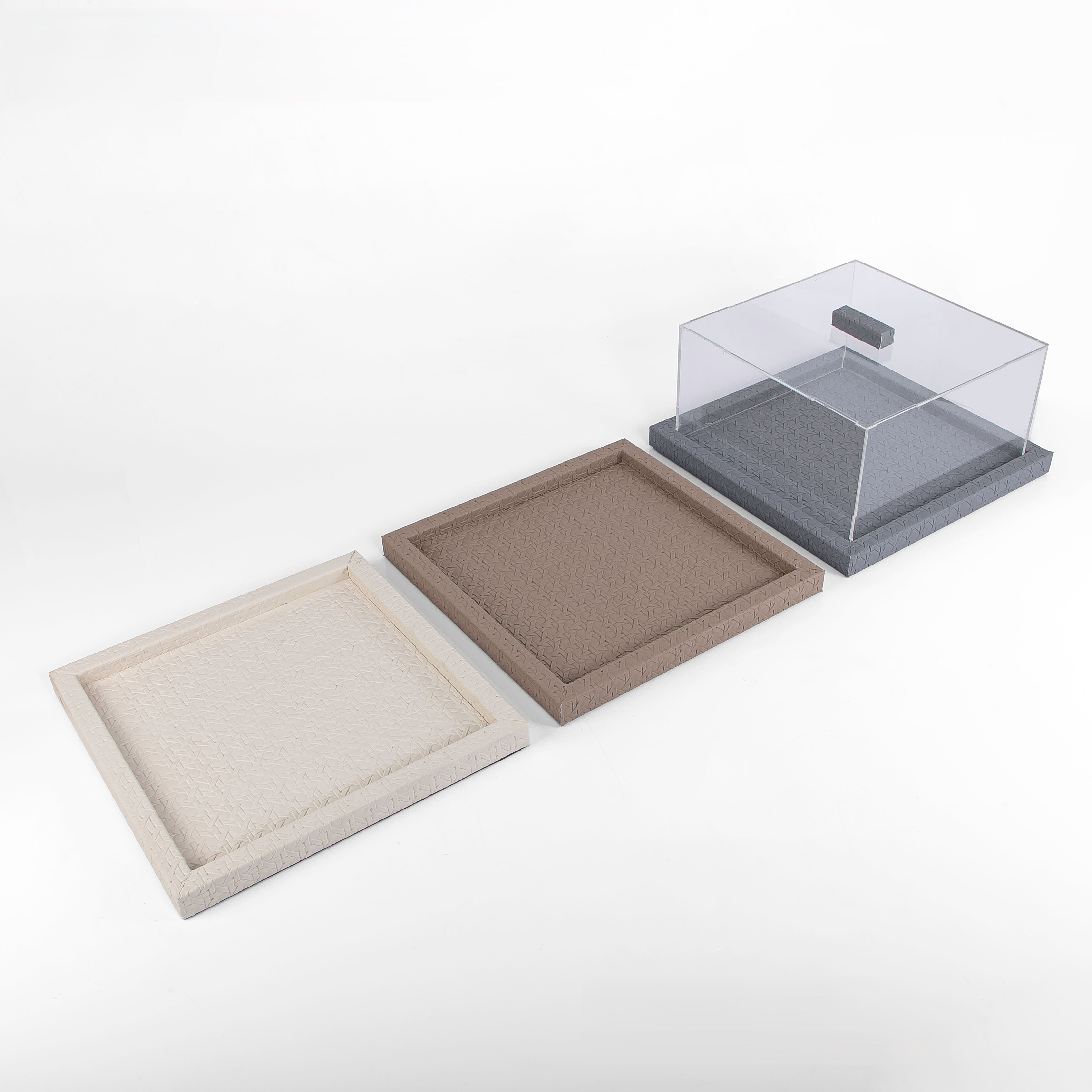 اختر الخيار: صينية خشبية مربعة الشكل مغلّفة بجلد متعدد الألوان ومغطاة بغلاف أكريليك - المقاس: 33 × 33 × 2.5 سم