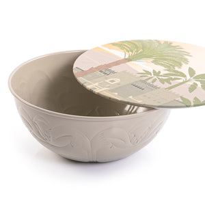 تم تصميم هذا الوعاء من المعدن المتين، مما يجعله مثاليًا للاستخدام اليومي. يوفر تصميمه القوي متانة طويلة الأمد، بينما تضيف أناقته لمسة راقية إلى أي طاولة. يأتي مع غطاء مطبوع يساعد في الحفاظ على نضارة الطعام ويجعل التخزين سهلًا. قطعة أساسية لا غنى عنها في أي مطبخ.