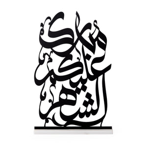 استاند أنيق على شكل هلال، عبارة عربية راقية "مبارك عليكم الشهر" من الداخل. يأتي على قاعدة متينه من الرخام الأبيض، يجمع بين الأصالة والفخامة العصرية
