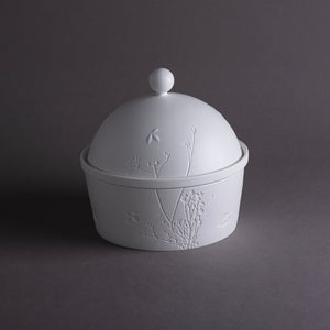 وعاء سيراميك باللون الأبيض المطفي مع غطاء