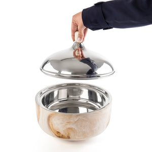 وعاء تقديم كبير حافظ للحرارة من الراتنج مع غطاء - عنبر