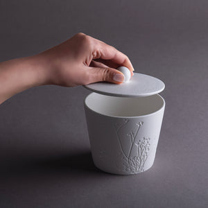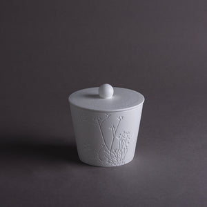 وعاء سيراميك باللون الأبيض المطفي مع غطاء