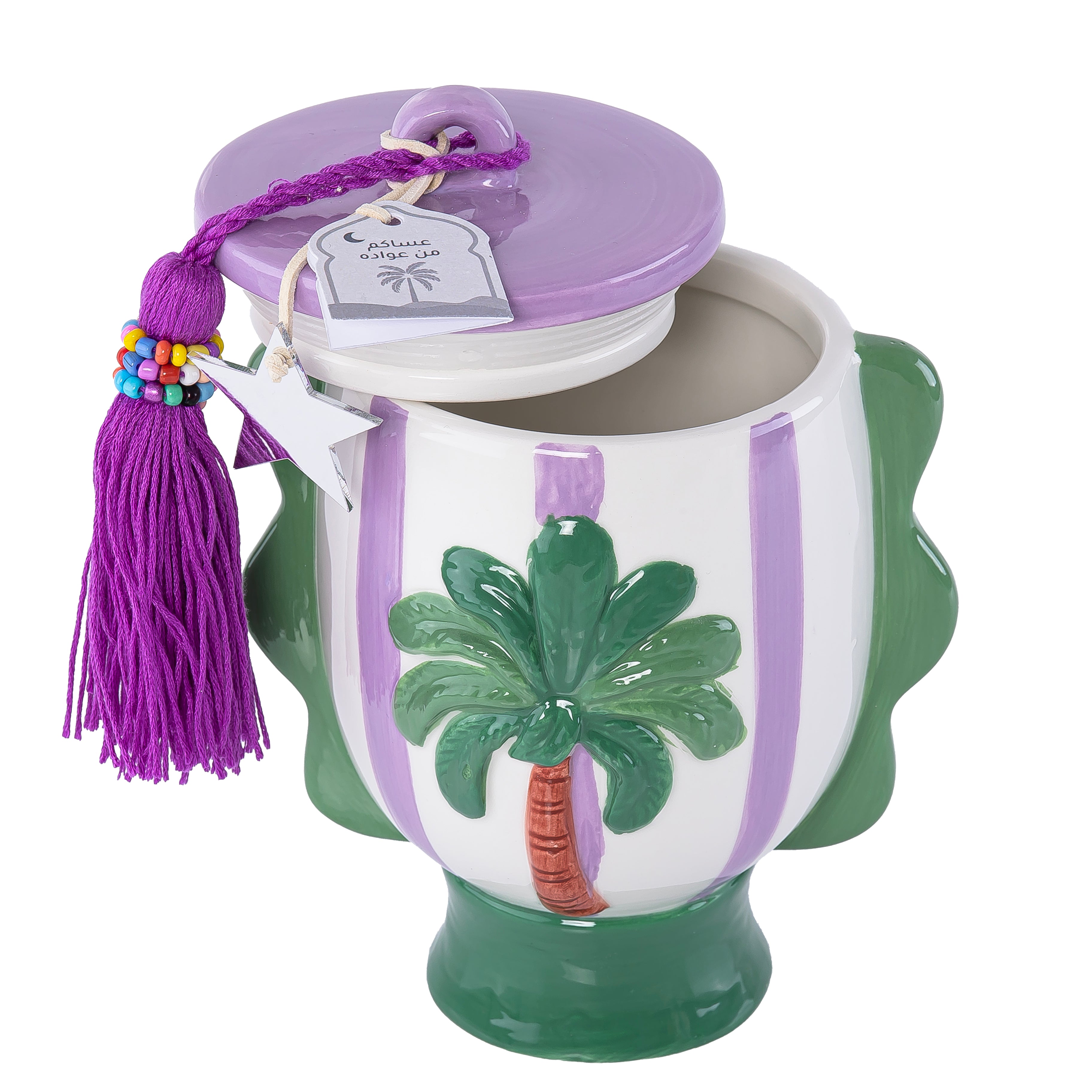 نقدم لكم جار القريقعان الخزفي - الإضافة المثالية لاحتفالاتكم المميزة! صُمم هذا الجار الخزفي الرائع لحفظ تشكيلة متنوعة من الحلويات والشوكولاتة، ليضفي لمسة من الأناقة والفخامة على مناسباتكم. صُنع هذاالجار بدقة متناهية، وهو الطريقة الأمثل للارتقاء بمستوى ضيافتكم.