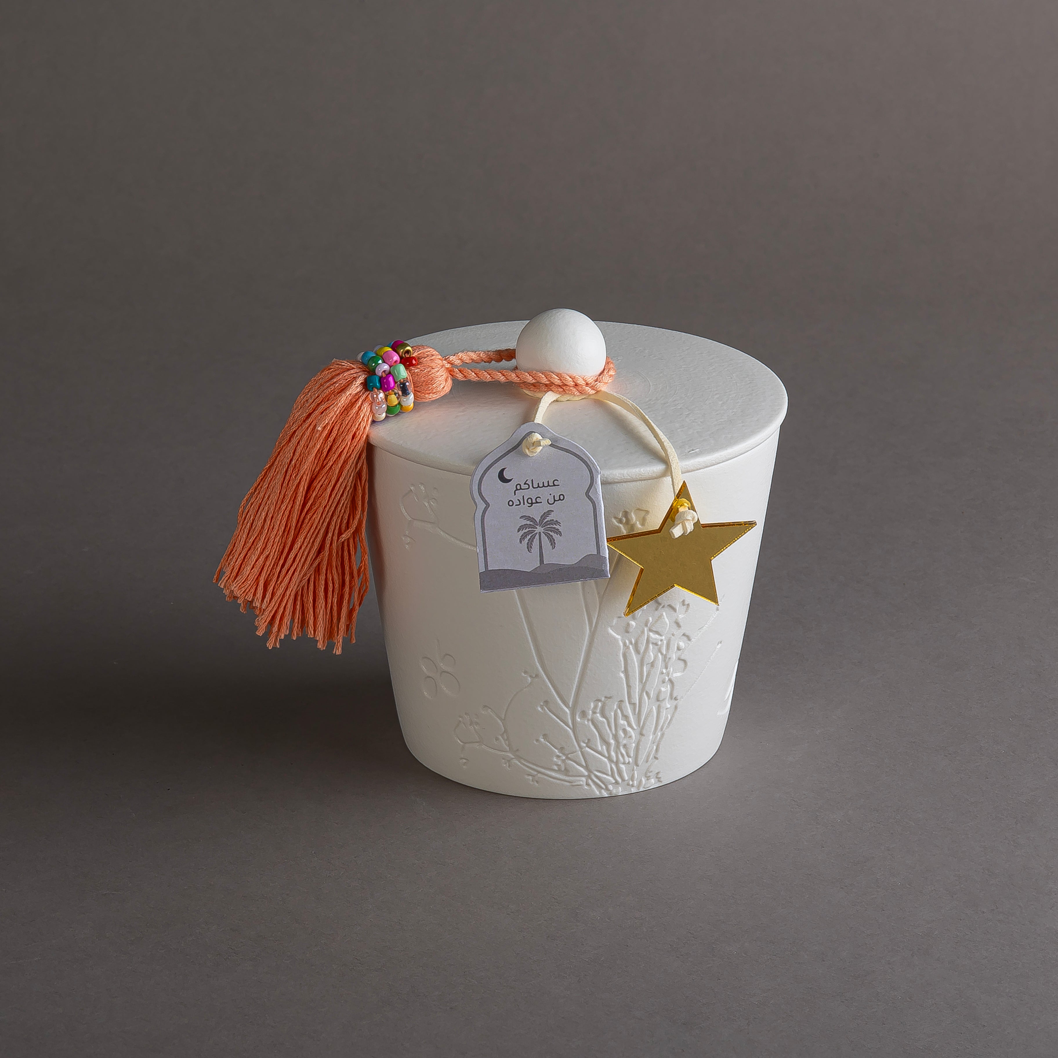 وعاء قرقيعان سيراميك أبيض - خوخي