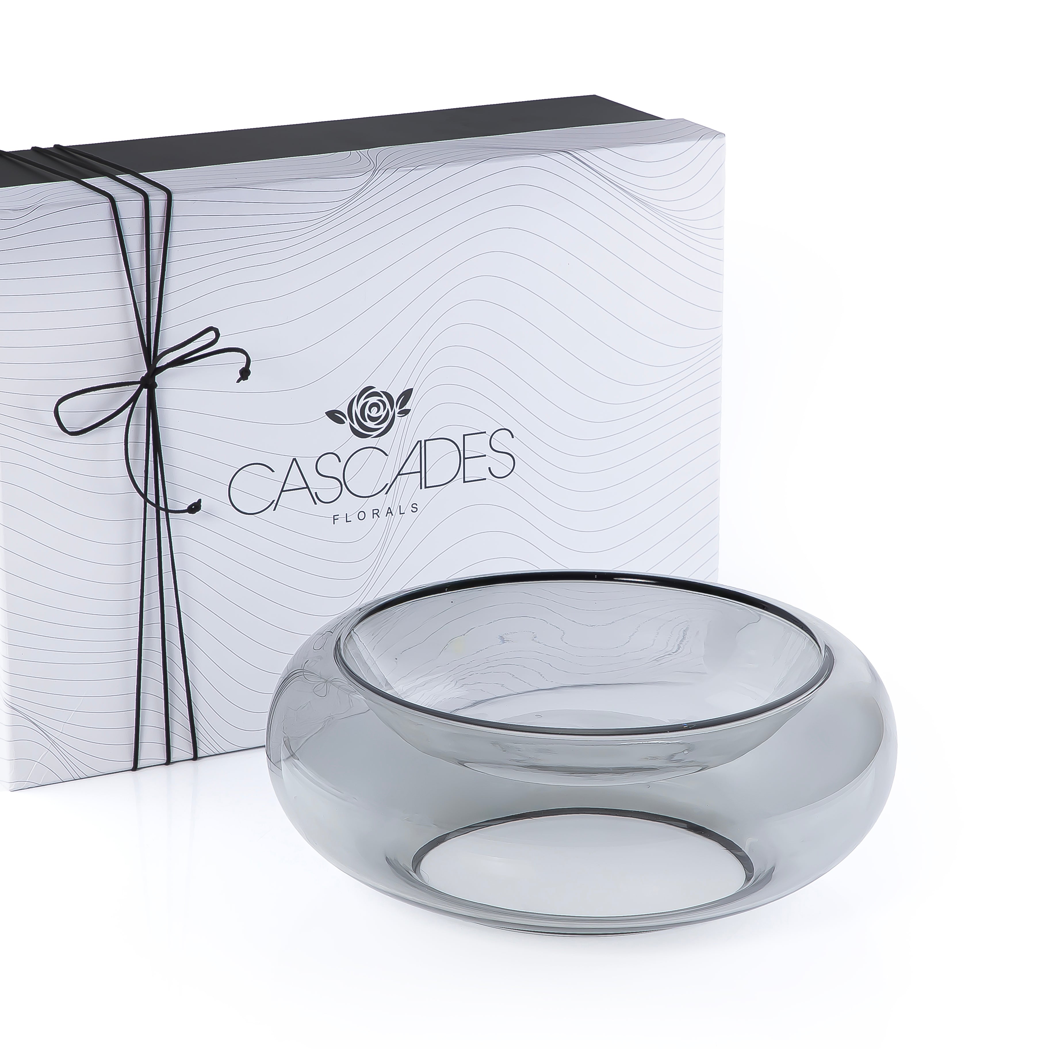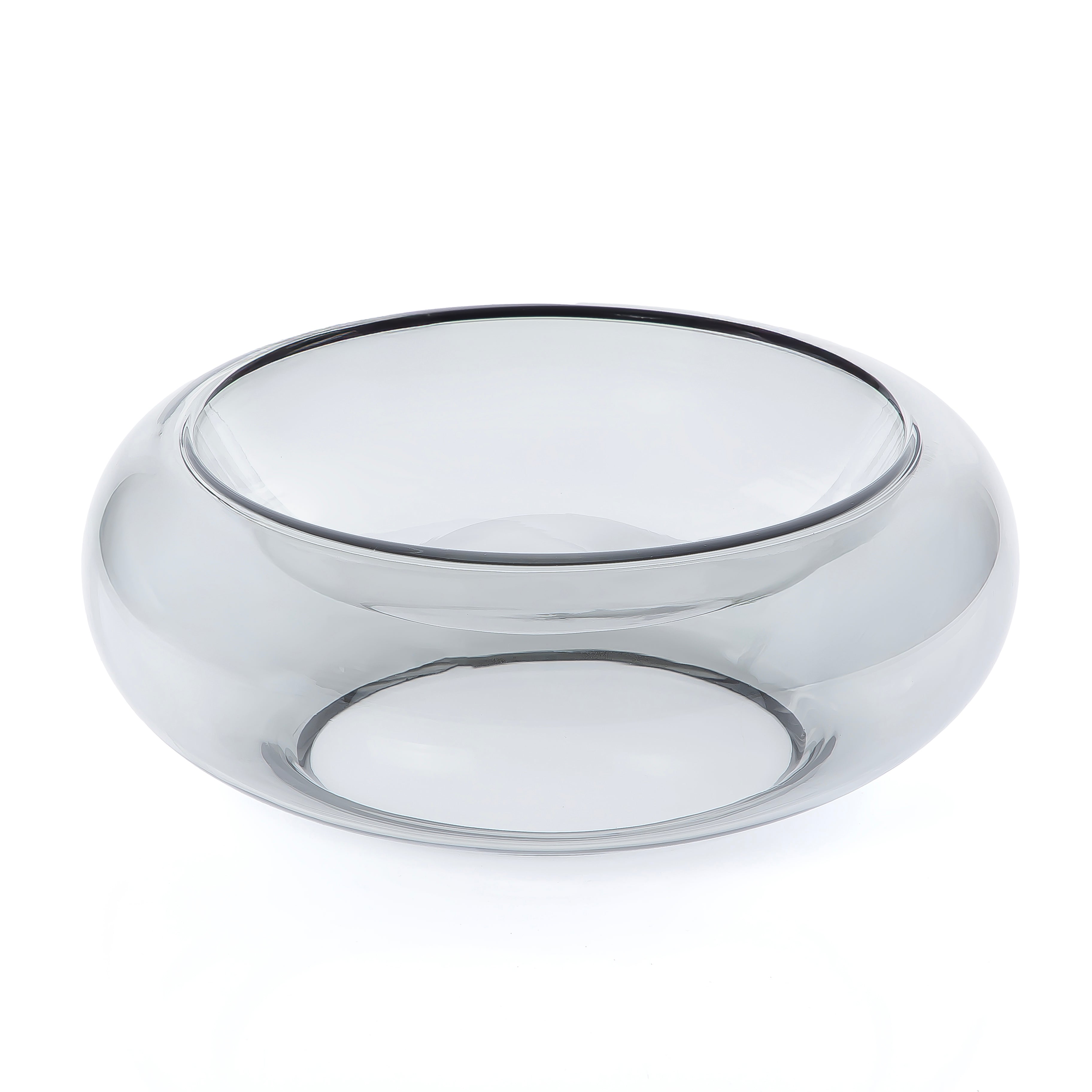 وعاء تقديم زجاجي أنيق حجم كبير - رمادي