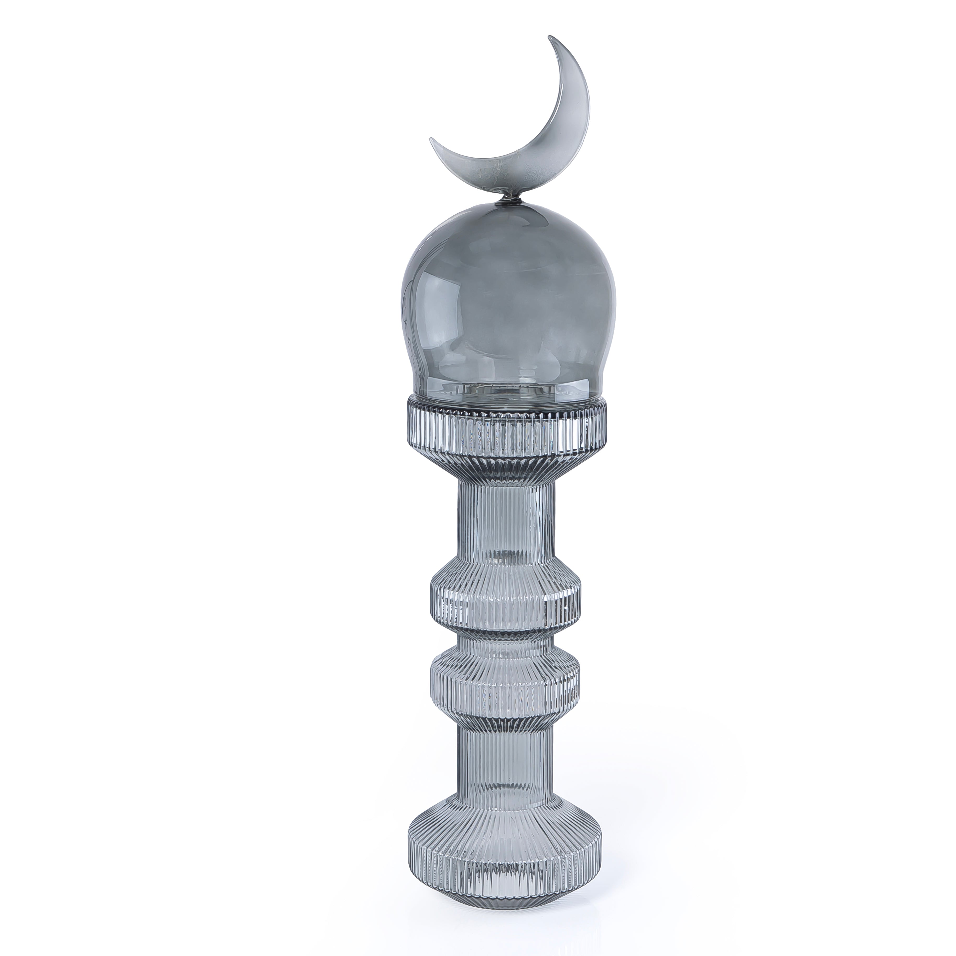 قطعة ديكور زجاجية علي شكل مأذنة حجم صغير مع بوكس هدايا - رمادي
