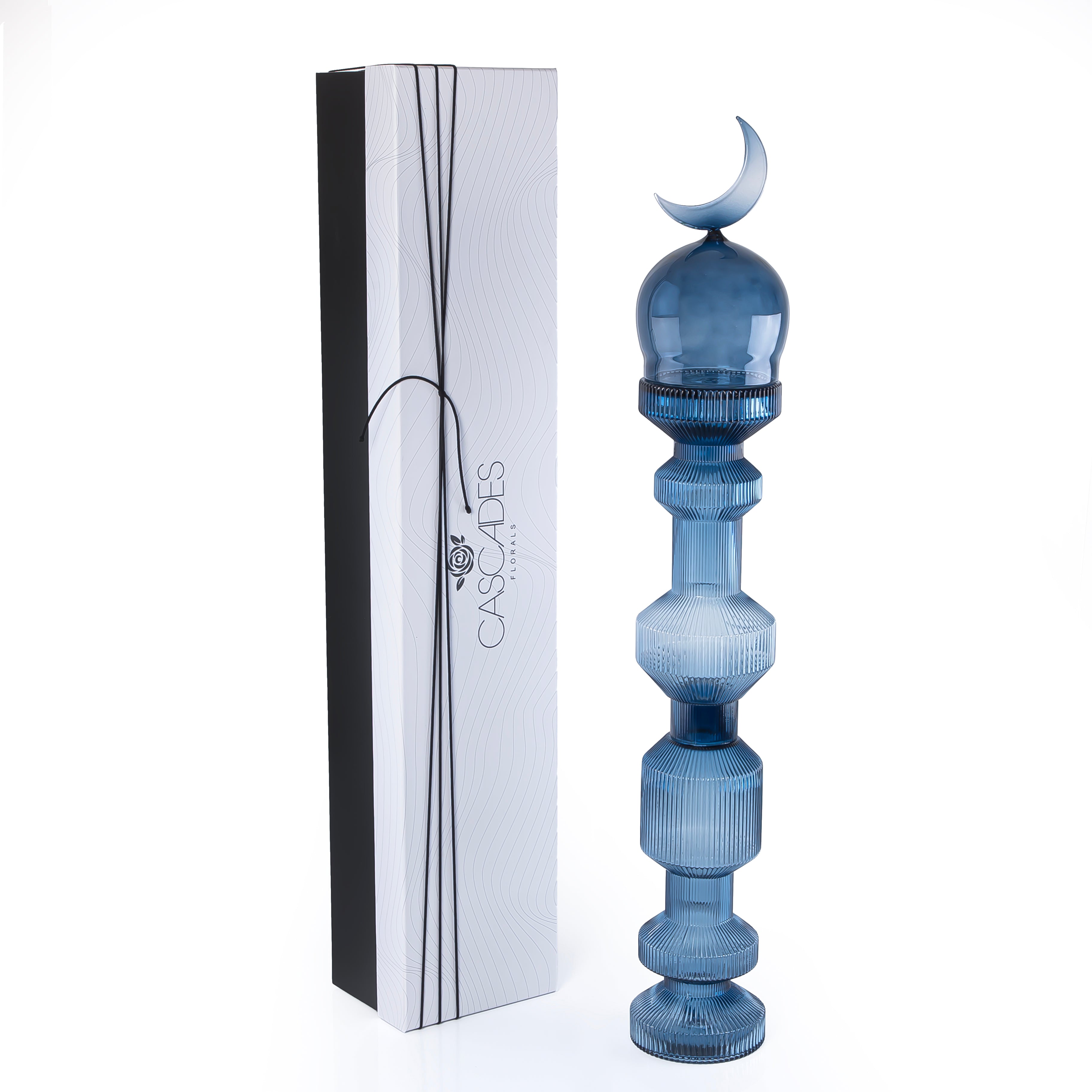 قطعة ديكور زجاجية علي شكل مأذنة حجم كبير مع بوكس هدايا - أزرق