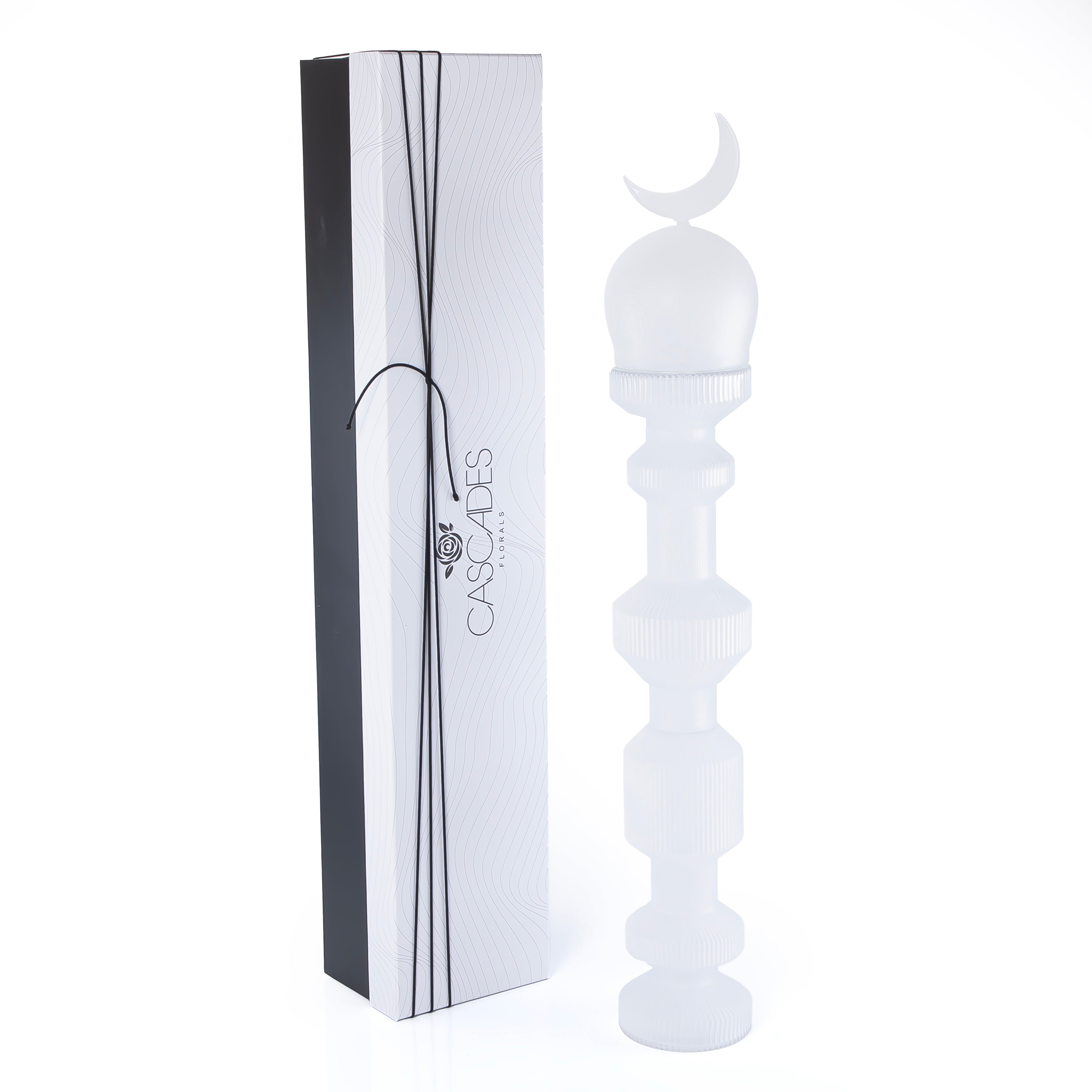 قطعة ديكور زجاجية علي شكل مأذنة حجم كبير مع بوكس هدايا - أبيض