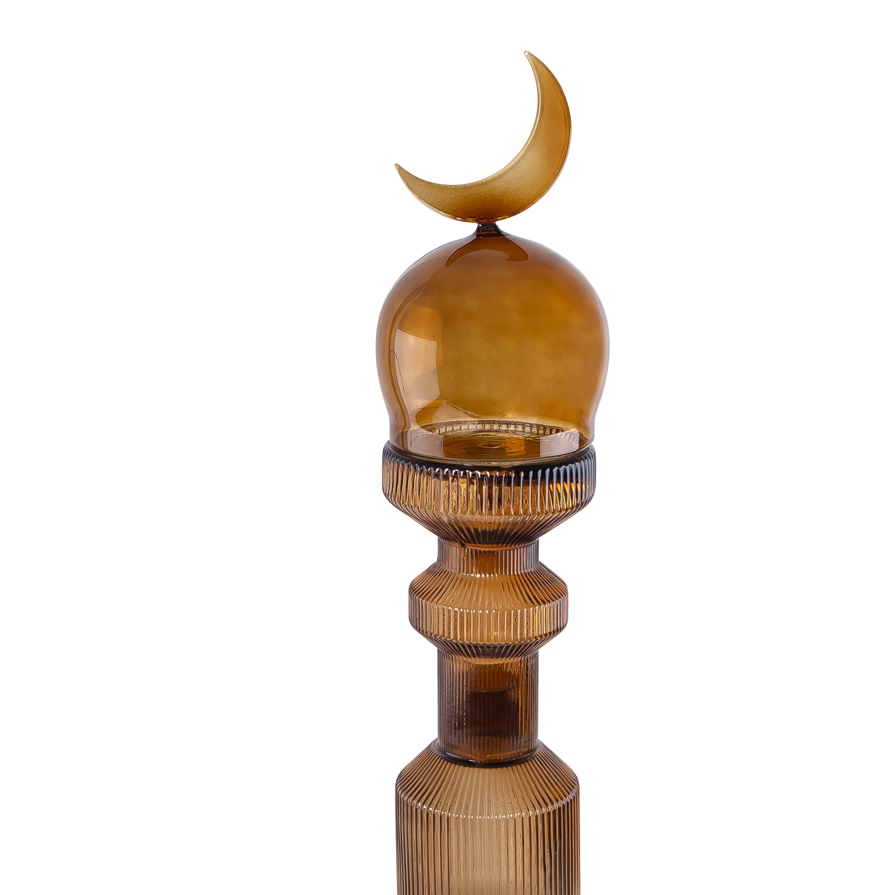 قطعة ديكور زجاجية علي شكل مأذنة حجم وسط مع بوكس هدايا - بني