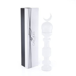 قطعة ديكور زجاجية علي شكل مأذنة حجم وسط مع بوكس هدايا - أبيض