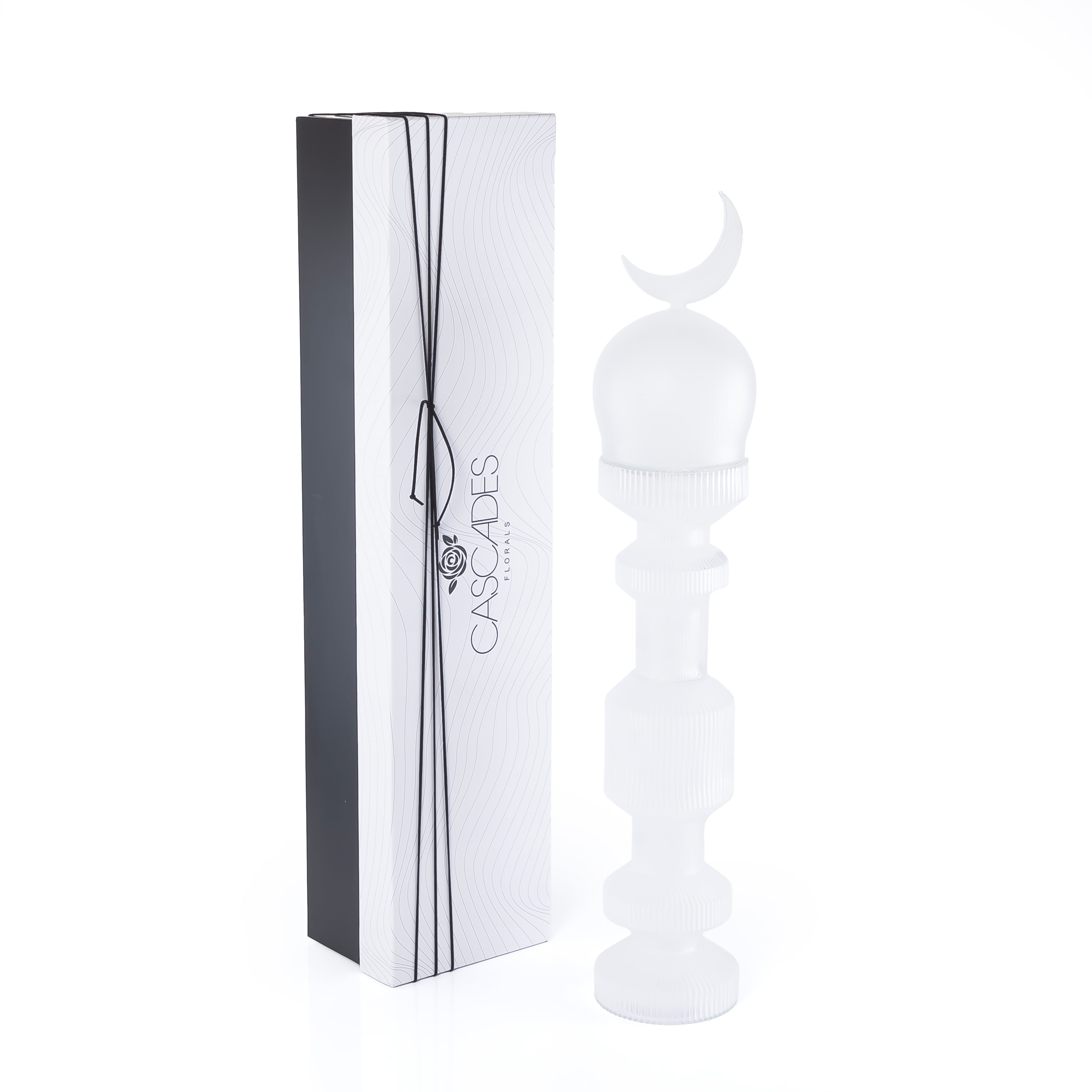 Chose the option: قطعة ديكور زجاجية علي شكل مأذنة حجم وسط مع بوكس هدايا - أبيض