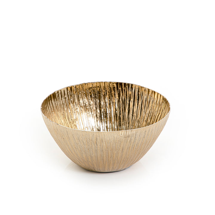 وعاء معدني دائري بتشطيب ذهبي فاخر، مثالي للتقديم أو الترتيب أو كقطعة ديكور مستقلة. تصميمه الكلاسيكي ولمعانه الأنيق يجعله إضافة مميزة لأي طاولة أو زاوية في المنزل.