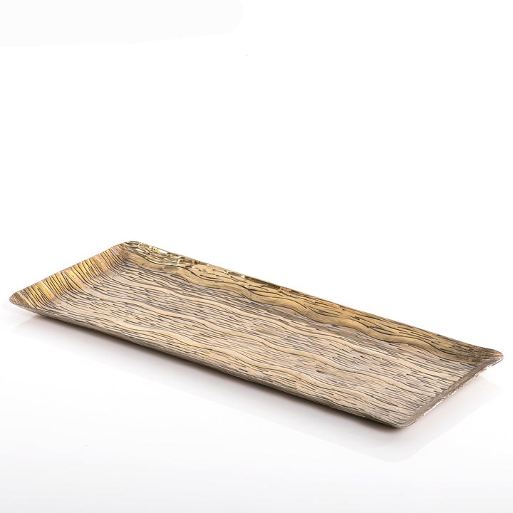 صينية معدنية مستطيلة باللون الذهبي اللامع، تجمع بين الأناقة والعملية. مثالية للتقديم أو الترتيب أو عرض القطع الديكورية، وتضفي لمسة عصرية راقية على أي مساحة.