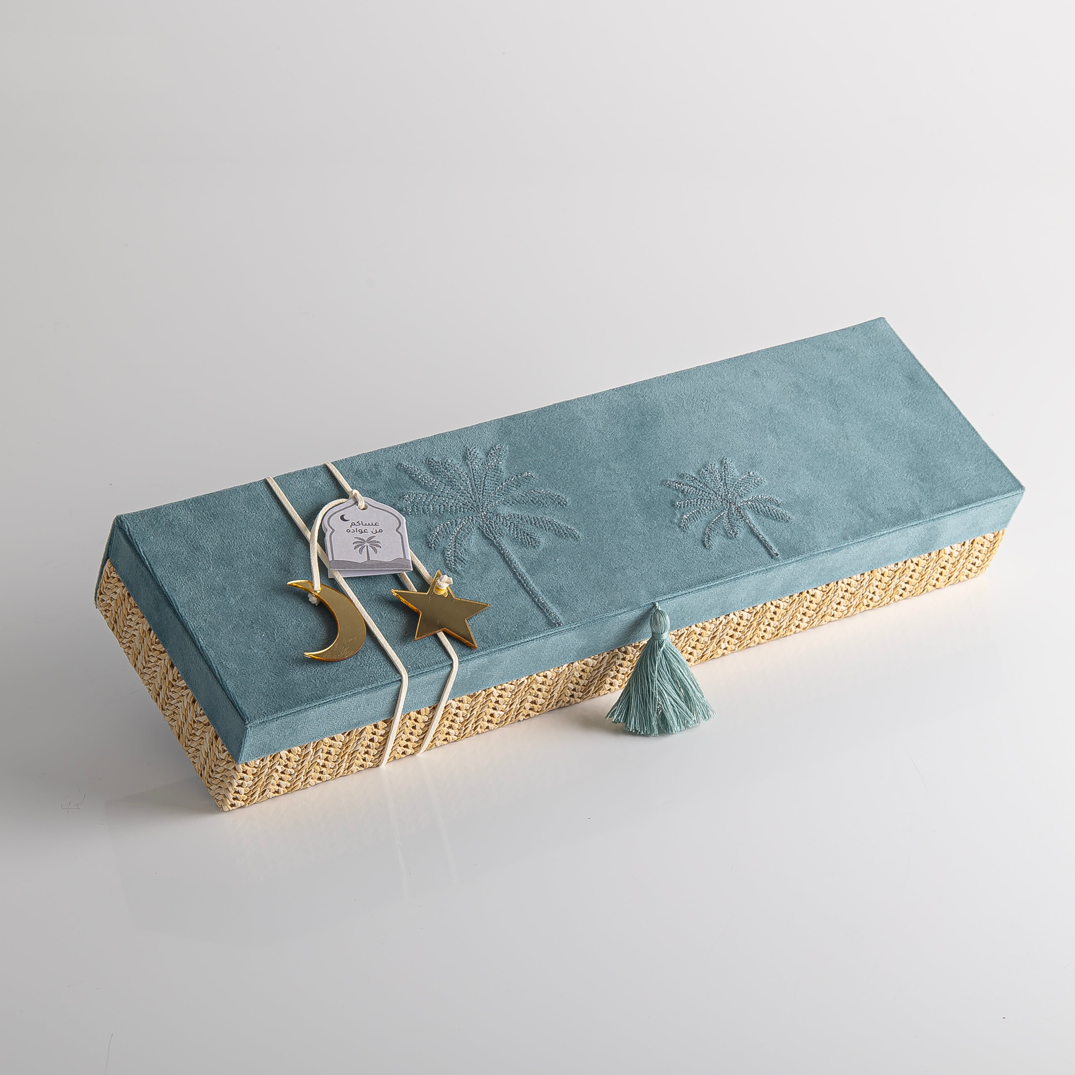 بوكس مجوهرات مستطيل كبير من الراتان مع غطاء – أزرق