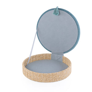 بوكس مجوهرات دائري كبير من الراتان مع غطاء – أزرق